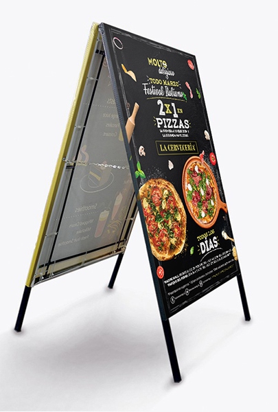 Estructura portátil y versátil para mostrar menús, promociones o información clave. Fáciles de colocar y cambiar el contenido.